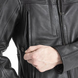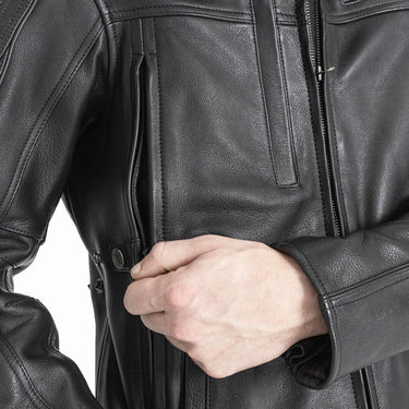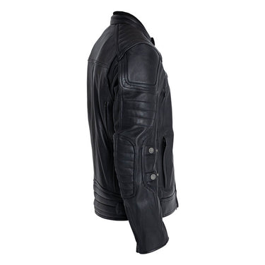 Bovin leather jacket (thickness 1-1.1 mm) with air ventilation system on back and side, waterproof membran, detachable thermo body warmer and armour pockets on back/shoulder. The reinforcement liner is made of 100% DuPont™ Kevlar®. Protector set separately available.