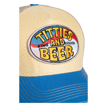 Elevate your headwear style with the King Kerosin Titties And Beer Cap in Beige/Blue. This cap exudes a sense of humor and boldness with its playful beige and blue design.