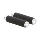 Rubber design features clean style with high traction rubber for excellent foot grip in all riding scenarios. CNC machined billet end cap with laser engraved logo. Note: See 599467 for matching shift/brake peg