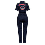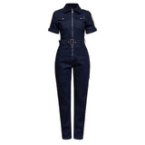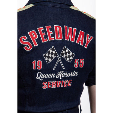 Ready for your turn in pole position? This jumpsuit from Queen Kerosin brings racing vibes directly to your look with striking back embroidery, authentic shoulder stripes, and a rugged denim design. The tailored cut with short sleeves, a front zip closure, and a waist belt accentuates your silhouette without constricting you. Whether for everyday wear or on your next road trip, the numerous pockets and high-quality stretch denim ensure you'll be both stylish and practical on the go. A true statement for all queens of the road!
