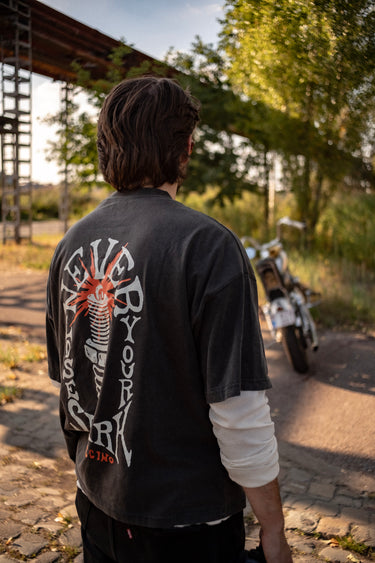 Motoccino Never Lose Your Spark Oversized Boxy T-shirt - Washed Black