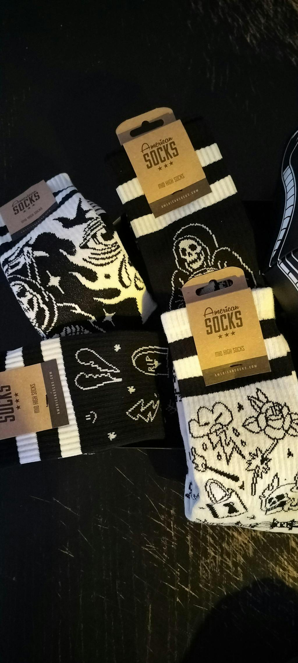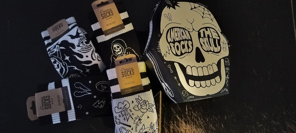 The Sock Gift Boxes from American Socks are more than just socks in a box. Each set comes with 3 pairs of our best crew socks designs, created in collaboration with artists. From a skateboard-shaped box to a coffin with Dracula or a guitar amp, every gift set is as unique as what’s inside. Perfect as a birthday present or just because you can, the sock gift boxes are unisex and made to thrill skaters, surfers, gamers, music fans and anyone into tattoo designs. Find your perfect gift box and surprise someone you care about with socks that truly speak their language.