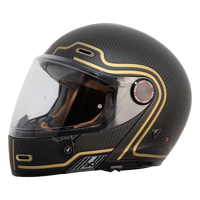 The By City 90 Degrees helmet is the ultimate full-face helmet for taking it all on the road in the most stylish way possible. Crafted with a carbon shell and multi-density padding, it ensures optimal protection and comfort for riders. The injected visor provides clear visibility, while ventilation inlets maintain airflow during rides. Its removable and washable interior ensures hygiene and longevity. Equipped with a micrometric closure for secure fastening, the helmet is also Bluetooth-ready, catering to modern connectivity needs. Certified under the latest ECE/UN R22.06 standards, the 90 Degrees helmet offers riders a perfect blend of style and safety.