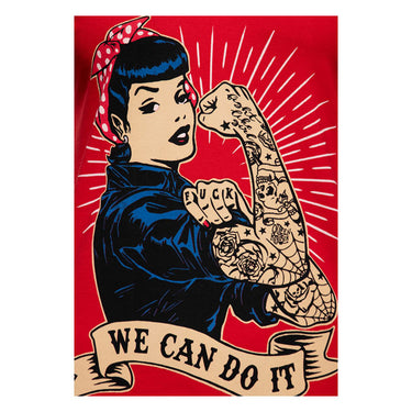 The print shirt from Queen Kerosin is full of girl power! It is made from a super soft cotton fabric that hugs the figure beautifully thanks to the stretch content! It has short sleeves and a feminine V-neckline. The "We can do it" print completes the retro look and makes a clear statement. The basic slim fit also offers lots of combination options for everyday wear! Available in several colors.