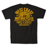 Gear up with the West Coast Choppers Parts t-shirt, a solid t-shirt crafted from premium 100% cotton for a comfortable fit and feel. Featuring the iconic Parts logo in striking color, this t-shirt embodies the rebellious spirit of the open road. Available in several color combinations, it's designed with a comfort cut to keep you riding in style.