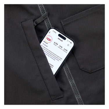 The Biltwell 4-Speed Vest is a robust piece of motorcycle gear, designed with a 13 oz. 100% cotton canvas exterior for durability. It features flexible 3" wide canvas accordion side panels made from a blend of nylon and elastane, providing a comfortable fit. An oversized hidden pocket on the right chest with an 8-inch vertical zipper offers additional storage, while the interior boasts two patch pockets, one with an elastic loop for securing keys. The interior liner is breathable, made from a mix of polyester and Repreve, and features a sublimated graphic for added style.