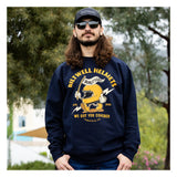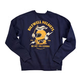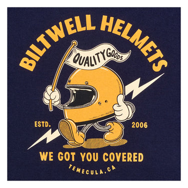 One of Biltwell favorite designs this year works great on this super-comfortable midweight sweatshirt. This happy-go-lucky creation was hand-drawn by the world renowned artist Jay Cruz. Super dark navy color is a great alternative to basic black. 8.5 oz (280 gm) cotton/polyester blend fleece is a standard fit and is detailed with hand-screened water-based inks, woven clip tag.