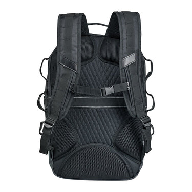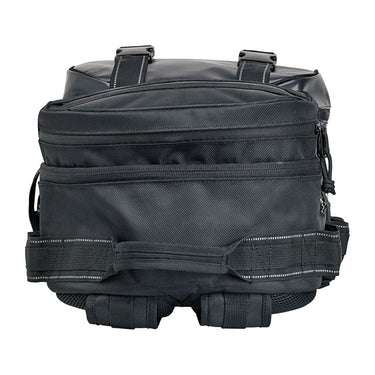 Designed with on-bike, or even off-bike, travels in mind. To visualize the main interior volume, it holds 48 beer cans of 355cc. Manufactured from 1680 Denier/PVC outer shell with hi-vis orange interior lining. Two large external zippered pockets are present for quick access fuel or water bottles. The back of the main compartment contains a padded sleeve which will hold a laptop. Complete with compression straps. Additional straps will allow holding a bedroll, jacket or so to the back and allow secure installation to your bike. A ventilated back panel keeps some room between your back and the pack when actually carrying it as a backpack. Dimensions: 11.5" (29.2cm) wide x 18" (45.7cm) tall x 10" (25.4cm) deep.