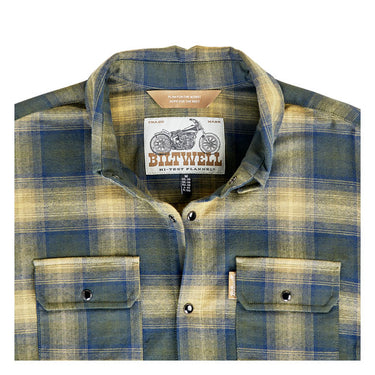 The Biltwell Hi-Test flannel shirt combines rugged durability with meticulous design. Crafted from heavyweight cotton, it's the epitome of comfort for the outdoor enthusiast or the urban explorer. Stainless-steel snaps add a touch of class and practicality, while hidden collar snaps prevent unwanted flapping during those motorcycle rides or windy days. With its thoughtful features like elastic thumb loops and a discrete slot for glasses, this flannel is not just a piece of clothing—it's a testament to quality and attention to detail, available in a range of sizes to fit every adventurer.