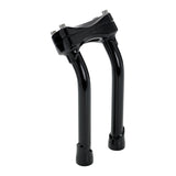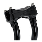 Gloss black electroplated finish. This comes with approval. With 2" (5.1cm) pullback. For 1" (25.4mm) handlebars. Constructed from investment cast steel upper & threaded lower. Riser tubes are TIG welded seamless 4130 chromoly with 3mm thick tubing and 1/2-13 threaded mounting holes which will take stock riser bolts. Spacing is 3-1/2" (89mm), to fit most H-D top triple trees. The top clamp bolt pattern will take stock H-D speedo & tach brackets. Note: Check your local MCS dealer or the MCS sales department for exact type of approval and validity on bike model and years on the test report.