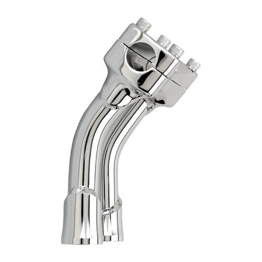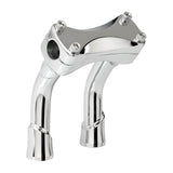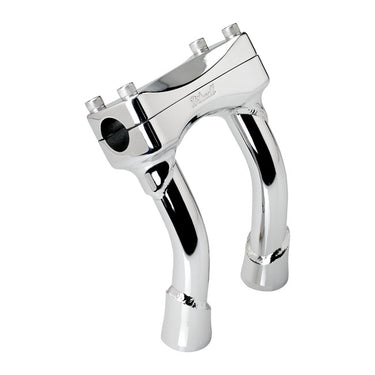 Chrome plated. This comes with approval. With 2" (5.1cm) pullback. For 1" (25.4mm) handlebars. Constructed from investment cast steel upper & threaded lower. Riser tubes are TIG welded seamless 4130 chromoly with 3mm thick tubing and 1/2-13 threaded mounting holes which will take stock riser bolts. Spacing is 3-1/2" (89mm), to fit most H-D top triple trees. The top clamp bolt pattern will take stock H-D speedo & tach brackets. Note: Check your local MCS dealer or the MCS sales department for exact type of approval and validity on bike model and years on the test report.