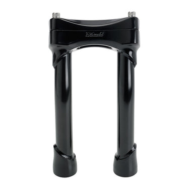 Gloss black electroplated finish. This comes with approval. With 2" (5.1cm) pullback. For 1" (25.4mm) handlebars. Constructed from investment cast steel upper & threaded lower. Riser tubes are TIG welded seamless 4130 chromoly with 3mm thick tubing and 1/2-13 threaded mounting holes which will take stock riser bolts. Spacing is 3-1/2" (89mm), to fit most H-D top triple trees. The top clamp bolt pattern will take stock H-D speedo & tach brackets. Note: Check your local MCS dealer or the MCS sales department for exact type of approval and validity on bike model and years on the test report.
