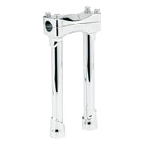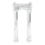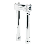 Chrome plated. This comes with approval. For 1" (25.4mm) handlebars. Constructed from investment cast steel upper & threaded lower. Riser tubes are TIG welded seamless 4130 chromoly with 3mm thick tubing and 1/2-13 threaded mounting holes which will take stock riser bolts. Spacing is 3-1/2" (89mm), to fit most H-D top triple trees. The top clamp bolt pattern will take stock H-D speedo & tach brackets. Note: Check your local MCS dealer or the MCS sales department for exact type of approval and validity on bike model and years on the test report.