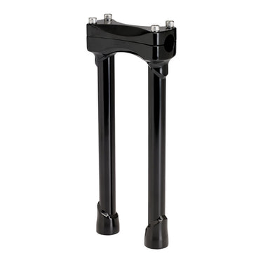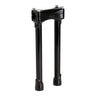 Black electroplated finish. This comes with approval. For 1" (25.4mm) handlebars. Constructed from investment cast steel upper & threaded lower. Riser tubes are TIG welded seamless 4130 chromoly with 3mm thick tubing and 1/2-13 threaded mounting holes which will take stock riser bolts. Spacing is 3-1/2" (89mm), to fit most H-D top triple trees. The top clamp bolt pattern will take stock H-D speedo & tach brackets. Note: Check your local MCS dealer or the MCS sales department for exact type of approval and validity on bike model and years on the test report.