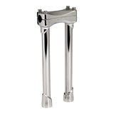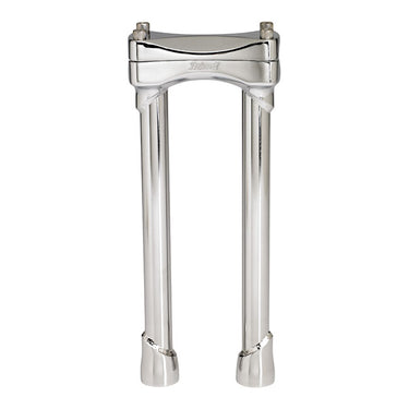 Chrome plated. This comes with approval. For 1" (25.4mm) handlebars. Constructed from investment cast steel upper & threaded lower. Riser tubes are TIG welded seamless 4130 chromoly with 3mm thick tubing and 1/2-13 threaded mounting holes which will take stock riser bolts. Spacing is 3-1/2" (89mm), to fit most H-D top triple trees. The top clamp bolt pattern will take stock H-D speedo & tach brackets. Note: Check your local MCS dealer or the MCS sales department for exact type of approval and validity on bike model and years on the test report.