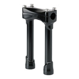 Black electroplated finish. This comes with approval. For 1" (25.4mm) handlebars. Constructed from investment cast steel upper & threaded lower. Riser tubes are TIG welded seamless 4130 chromoly with 3mm thick tubing and 1/2-13 threaded mounting holes which will take stock riser bolts. Spacing is 3-1/2" (89mm), to fit most H-D top triple trees. The top clamp bolt pattern will take stock H-D speedo & tach brackets. Note: Check your local MCS dealer or the MCS sales department for exact type of approval and validity on bike model and years on the test report.