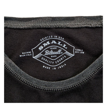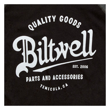 This Biltwell Script shirt features the classic Biltwell logo design that's low-key and timeless. It’s designed with raglan sleeves and a shirttail hem to give a sporty look with exceptional comfort. This semi-fitted, modern jersey is crafted from 4.5 oz. 100% combed ring spun cotton. Flatlock stitched contrast ribbed collar and raglan armholes. Contrast double needle hem raglan 3/4 sleeves with raw serge shirt tail bottom hem. Detailed with hand-screened water-based inks, woven clip tags and the irritating collar tag has been replaced by a screen-printed label.