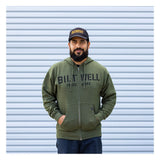 Low-key timeless design never goes out of style. This Biltwell Stencil not-so-standard zip hoodie is made with soft, midweight 8.5 oz cotton/polyester blend fleece with a generous fit for comfort. Features jersey lined hood, heavy gauge drawcord with metal eyelets, #5 metal kissing zipper and 1x1 ribbing at cuffs and waistband.