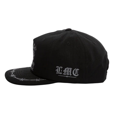 The Loser Machine cap is an unstructured twill 5-panel snapback that combines style and comfort. Featuring bold embroidery on the front, side, and visor, this cap makes a striking statement. With LMC woven label branding, it’s the perfect accessory for any adventure.