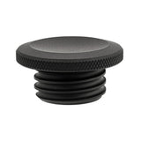 Right hand threaded. Vented. Aluminum gas cap that can be used as a vented or non-vented fuel cap, since it can be assembled with the vents open or closed. It comes assembled with vents open for H-D use. The dished top gives it that custom look, the knurling takes care of sufficient grip to open the fuel cap.