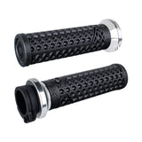 - Specifically designed for 1" handlebars (at the grips) - Reinforced Waffle Pattern on top provides palm pad for extra comfort - Classic Waffle Pattern on bottom delivers excellent finger traction - Clutch Side Billet Alloy Lock-On™ Clamp delivers 100% slip-free security - T15 Torx bolts provide extra secure clamping for solid, twist-free mounting - Eliminates the need for grip glue or safety set-screws - Provides simple installation and removal - Complete with throttle sleeve to ease installation - Proprietary Medium-Compound durometer hardness improves overall comfort and durability - Length: 130mm Overall Grip Length including flange