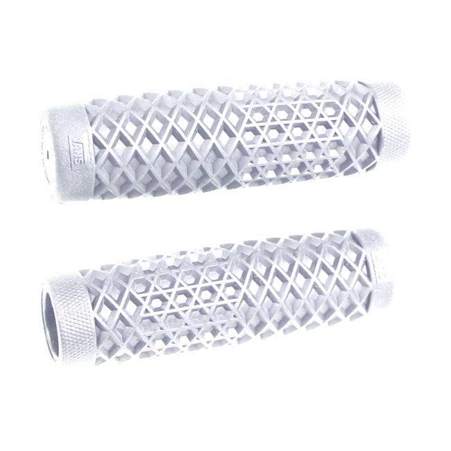 Vans sneakers provides grip & style to skaters, snow boarders, surf-dudes, dudettes and just about anyone that is more into iconic statements than into average. The collaboration between Cult crew and Vans gave birth to motorcycle grips, made with the classic waffle sole texture of Vans sneakers! A small dome in the center makes these grips fit like a glove and its guaranteed that none will match Vans sneakers as well. - Overall length 5" (125mm) - Sold in pairs - Closed ends - 1" (25.4mm) diameter clutch side & 1-1/8" (28.6mm) diameter throttle sleeve side. Note: A throttle sleeve is not included and must be re-used or purchased separately.