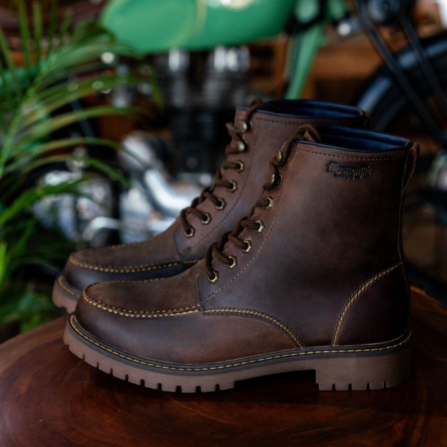 The Trip Machine Moc-toe boots is a classic that has stood the test of time. Originally designed in the early 1900s for factory workers; the boots are crafted with a distinctive moccasin-style toe; which provides extra protection and durability for the toe area. The Moc-toe features an additional 1.8 mm mould at the toe and heel along with ankle protectors. Crafted from heavy duty abrasion resistant leather; the boots are engineered to protect in case of the unfortunate slide. The sole is resin based that's curated for extra grip on the road. With a metal shank; texon based insole and a premium lycra lining ensures that your feet have utmost comfort on long days. The Moc-toe boots are styled for the ride and off it. They are the perfect footwear even on days when you're not on the motorcycle. They are a timeless footwear that incorporates style and function.